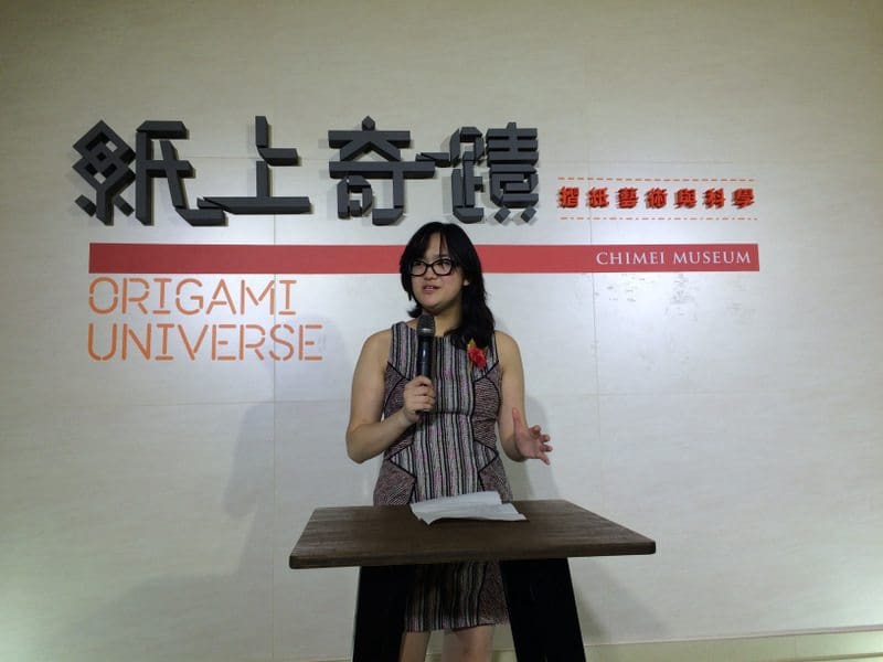 More than 1900 people saw “Origami Universe” on Saturday October 8th, a record attendance for a special exhibit at the Chi Mei. The record was shattered the following day when more than 2600 people showed up. It is too early to tell if the popularity of the exhibit will continue until it closes on May 30, 2017. However, I am confident it will change the public’s perception of origami, and encourage many of them to fold for fun and for developing useful products.