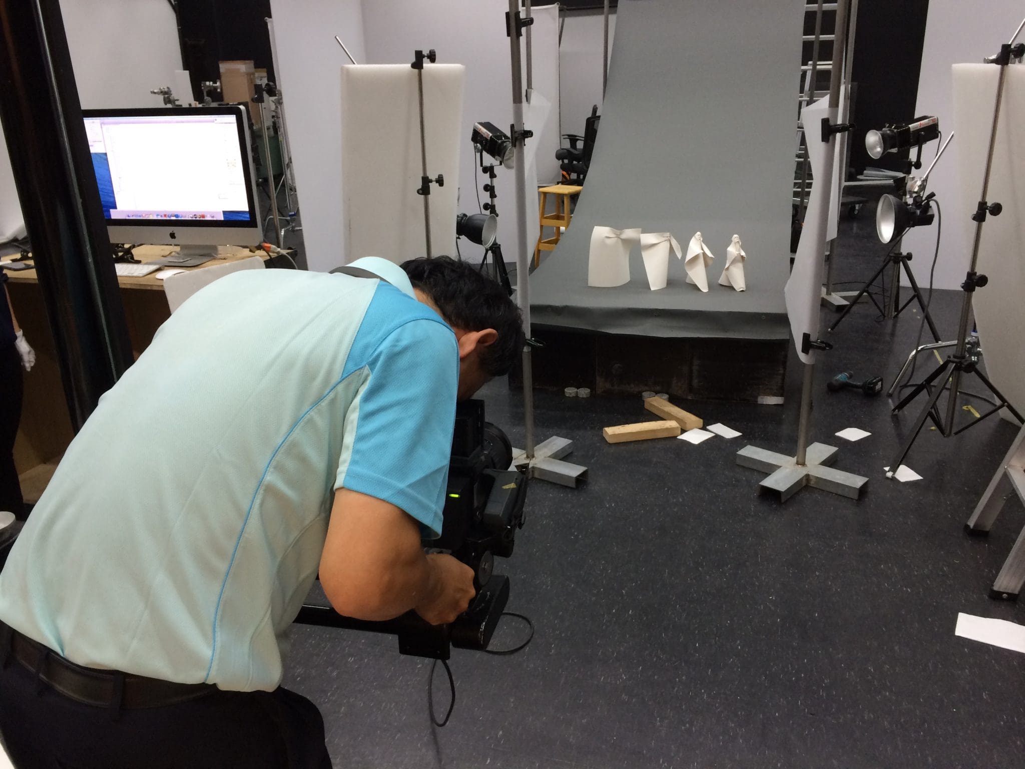 Vogel fashion with origami models for the skirts behind on the wall, and Tom Crain’s boxes.
