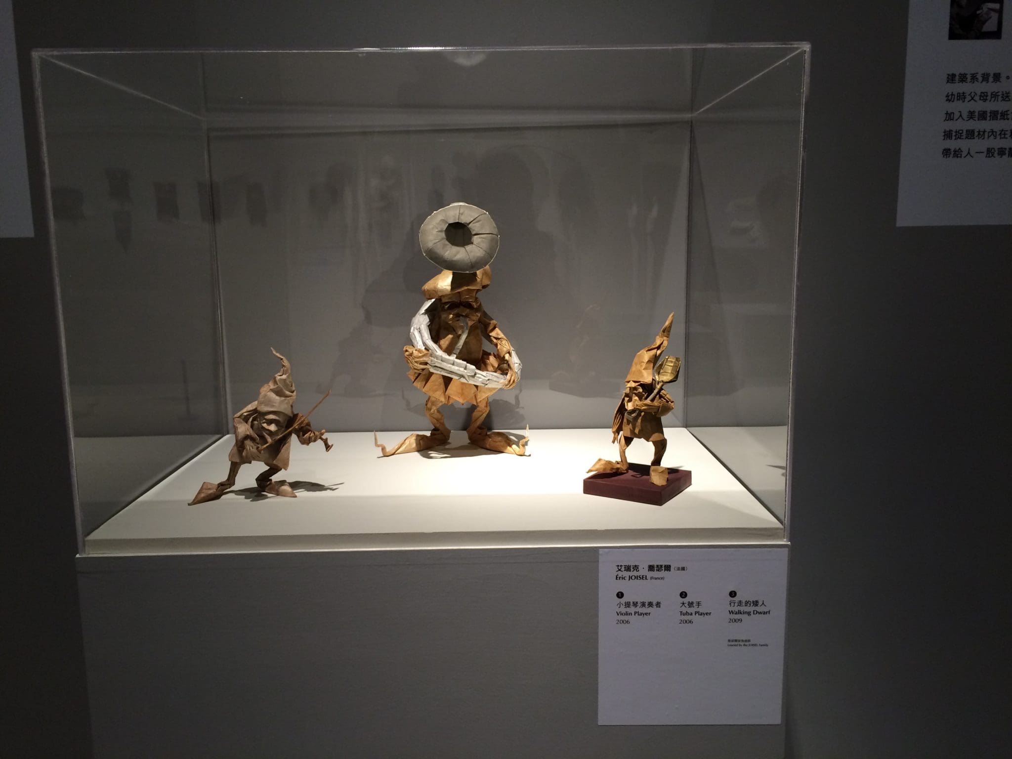 I was blessed to share the curatorship of “Origami Universe” with Uyen Nguyen, the very capable curator of “Surface to Structure”, the second major show of origami in New York since 1955. I had received help from Saadya Sternberg who co-curatedvartists with me for a previous exhibit of mostly nature-themed origami at the National Museum of History. The more comprehensive exhibit at the Chi Mei included geometric origami as well as applications of folding in fashion and design. This was Uyen’s expertise. She also greatly improved my section of the exhibit with artists whose works were inspired by humor and fantasy. Here in pictures is the story of how this exhibit evolved.