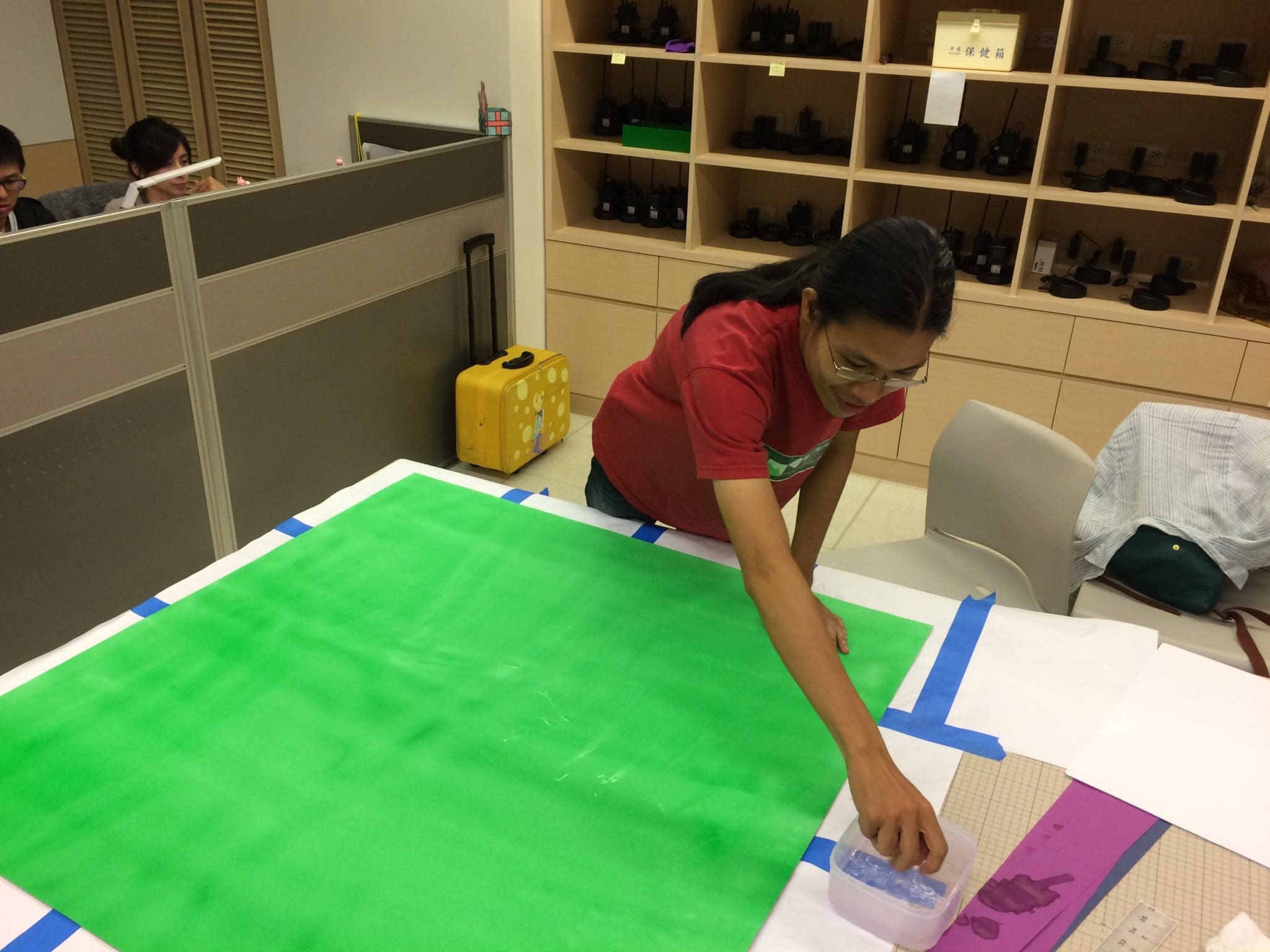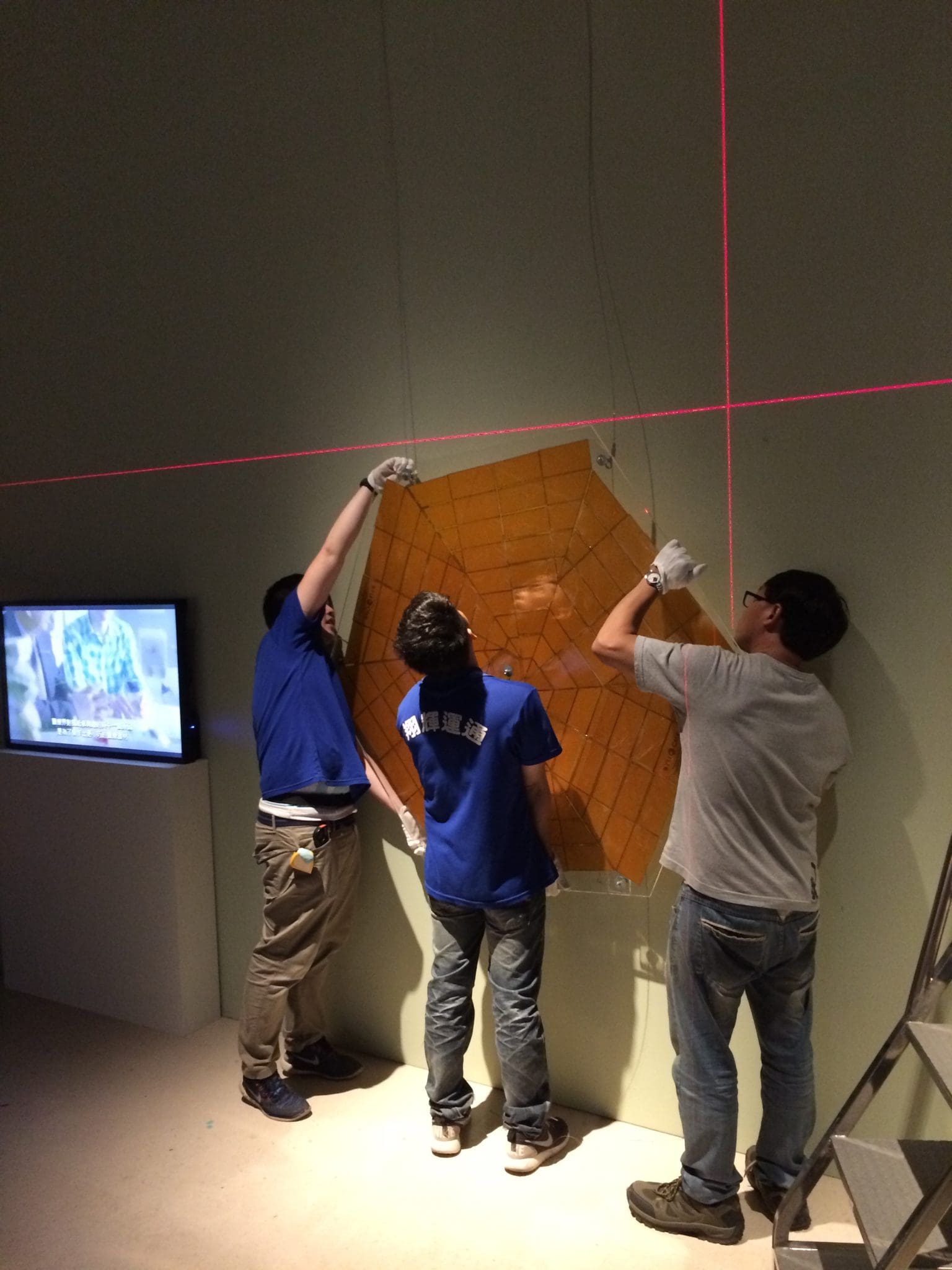 Sunway Express employees install a solar panel model for satellites while volunteers of the museum admire the decorations hung in the Resource Room.