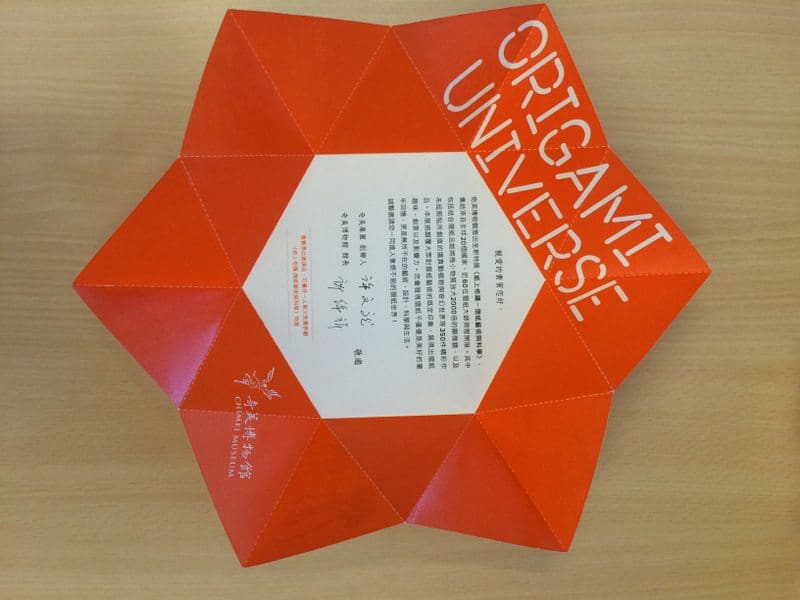 On October 4th, 2016, “Origami Universe”, one of the largest exhibits of origami and its applications opened at the Chi Mei Museum in Tainan, Taiwan. The exhibit featured 400+ works from 63 Artists, scientists, engineers, and designers from 21 countries. It occupied over 1400 square meters of space (14000 square feet) in the special exhibit galleries at the front entrance of the Chi Mei.