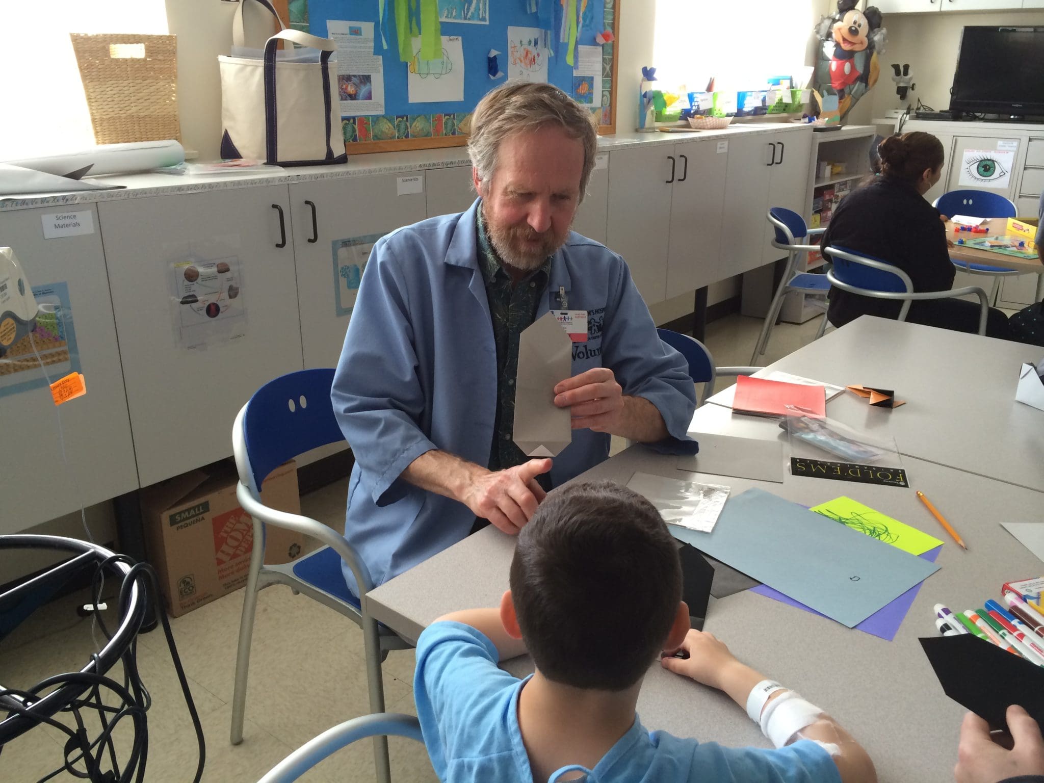 Like other forms of art therapy, origami instills a positive attitude for healing to occur. However, origami is a great deal easier to administrate in the hospital. Computers, art, and music materials need to be disinfected with alcohol if they travel to and from rooms of patients whose compromised immune system requires they be isolated. That and the increasing prevalence of antibiotic resistant bacteria impose a burden on hospital staff to administer school and art programs. Roughly a third of the patients I teach require me to put on a gown, mask, and or gloves when I enter their rooms. Origami paper is cheap. It can be recycled. It doesn’t need to be disinfected or saved. Hospital staff love that aspect.