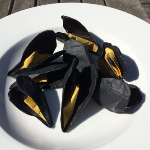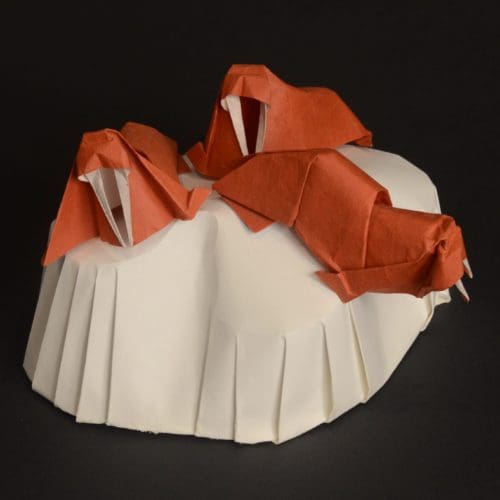 Human population explosion and scarcity of resources, especially under the influence of climate change will increase the stress and divisions human populations experience, not to mention its agents of disease and wars. I am encouraged that origami has a bright place in that future, as a reliever of stress, a means to means to create understanding between cultures, and as a catalyst for solutions such as foldable cheap housing. When I teach a simple origami figure I am also teaching a creative way to think and solve problems. Designing something out of a single uncut square has taught me how to think outside the box and greatly contributed to my ability to ask better research questions as a scientist [blog]. Just maybe someone I have introduced to origami will take that knowledge to make a positive difference.